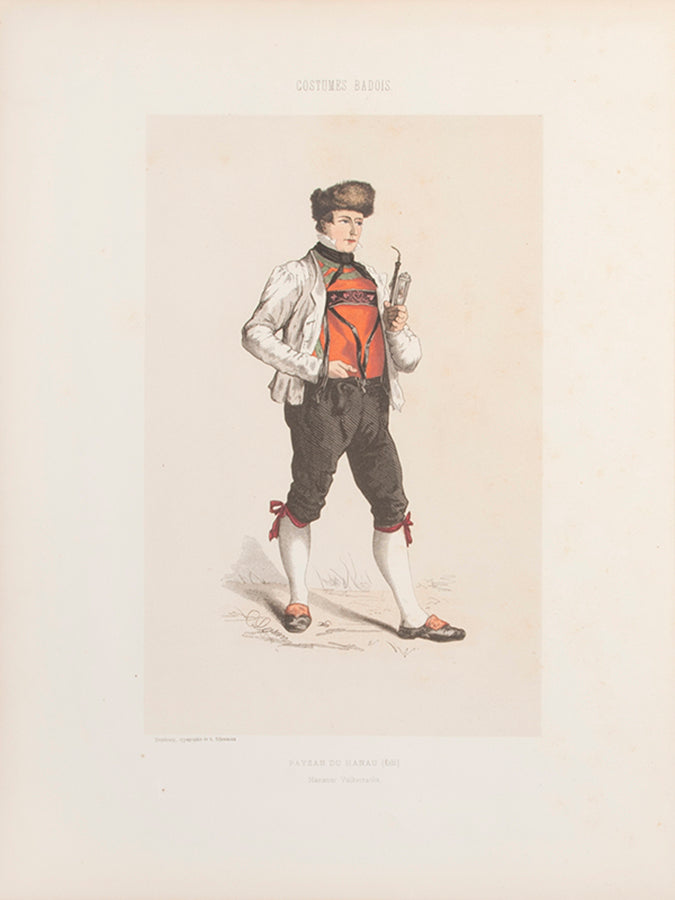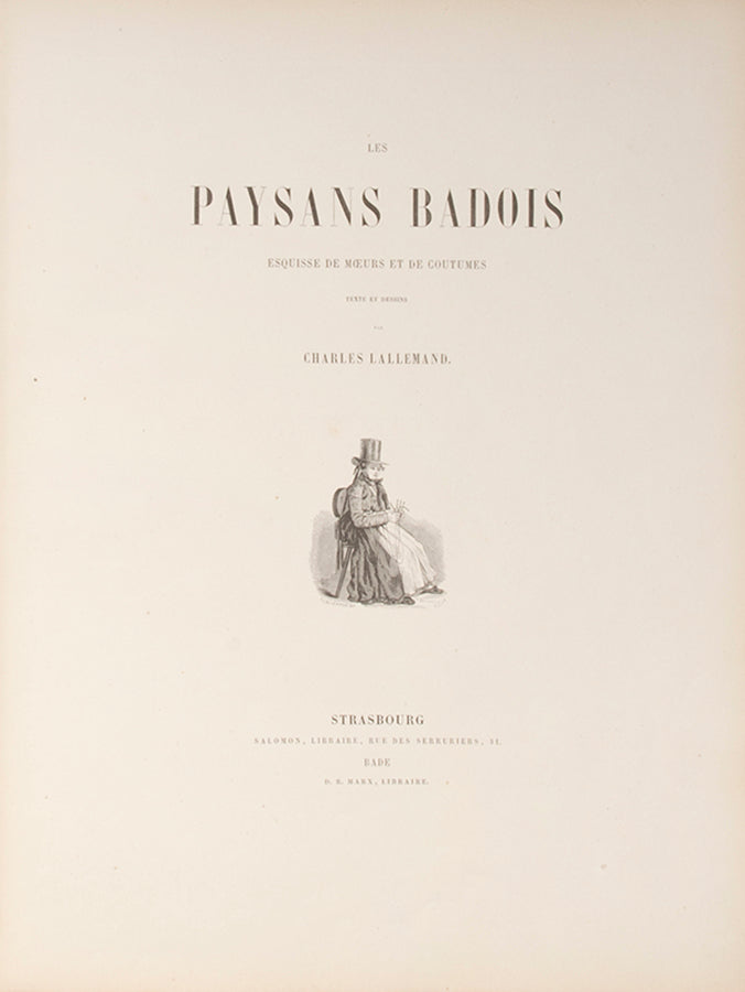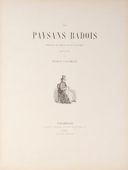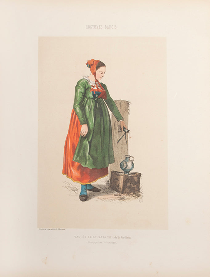 First edition; 4to (35 x 27 cm); text in French, 16 hand-colored lithograph plates, map of the Black Forest, in-text woodcut illustrations, occasional very light spotting; publisher's green cloth, boards blocked in blind, gilt title to upper board, all edges gilt, boards a little bumped, hinges split; 32pp.