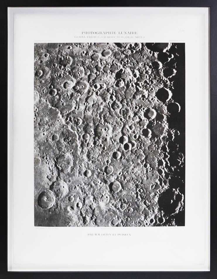 Héliogravure after photographs by Loewy and Puiseux depicting the Moon's surface, from Atlas Photographique de la Lune. Framed and glazed, overall size: 67cm x 86.2 cm.