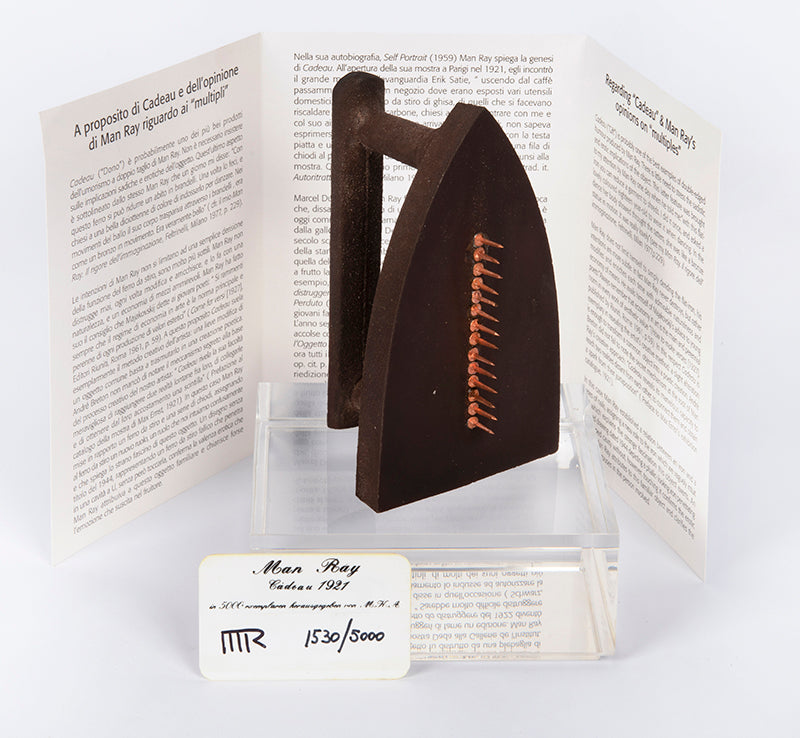 Cast iron sculpture with rust patina and 14 copper nails, 1921/74, annotated with the artist's name and titled in white paint on the handle, numbered 1530/5000 from the edition of 5000, also signed with initials by the artist and numbered on the accompanying certificate card, published in 1974 by Luciano Anselmino, Turin, overall 16.5 x 9.9 cm. (6½ x 3 7/8 in.)
