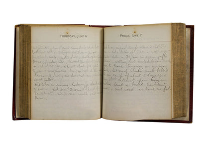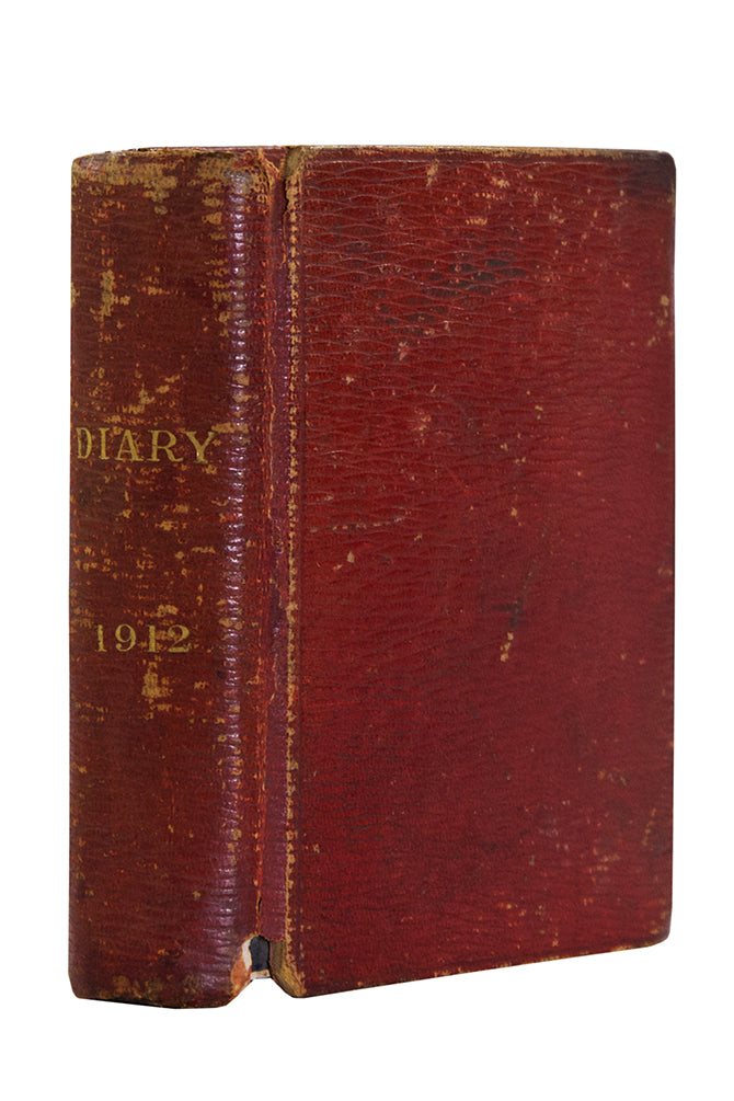 Small 8vo, Approximately 400 pages with a small supplement tipped-in, closely written in pencil, red morocco, rubbed, lower hinge split.