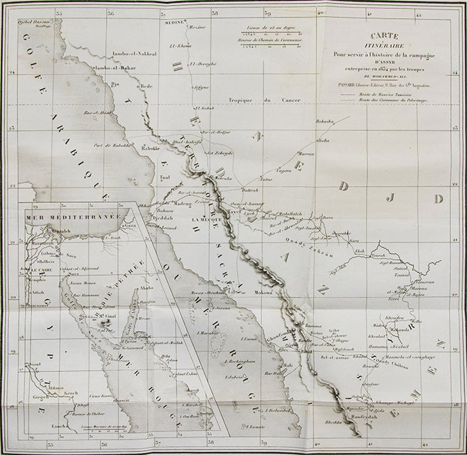 In 1833-34 Maurice Tamisier served as a secretary to the chief medical officer in the armies sent by Muhammad Ali to suppress further uprisings in the Hejaz. 'Accompanied by a group of other Europeans, including an amateur conjurer whose tricks astonished the Bedouins... he made his way into the mountainous area of Asir in the south of the Hejaz and took part in a battle in which Egyptian troops were rewarded with 10 shillings for every pair of enemy ears that they brought in. Tamisier obviously enjoyed chatting to the local people and recorded some of their tales' (Bidwell, Travellers in Arabia, 1995, pp.122-123).