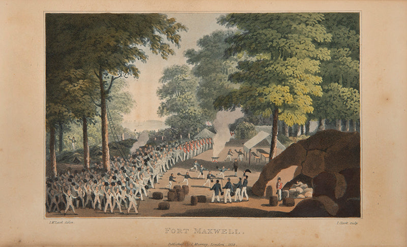 'This voyage was undertaken for the purpose of conveying the Embassy, under Lord Amherst to China. In 1816 the Alceste reached Rio de Janeiro. After a short visit to the Cape of Good Hope, Batavia was touched and China was reached shortly after. While the matters of the embassy were proceeding, the ships sailed on an expedition for the survey and exploration of the west coast of Korea and the Ryukyu Islands. In the course of this work a long visit was made to Okinawa. On the return voyage, after Manila had been visited, the Alceste struck a submerged reef off Sumatra and became a total loss. The crew and passengers were saved and a vivid account is given of their experiences, of how they were attacked by Malay pirates and of their final rescue. They also visited St. Helena and an interesting account is given of an interview with Napoleon.' (Hill).