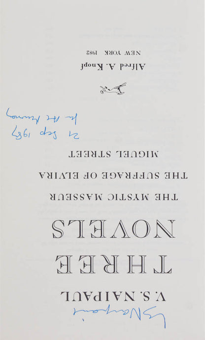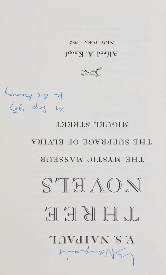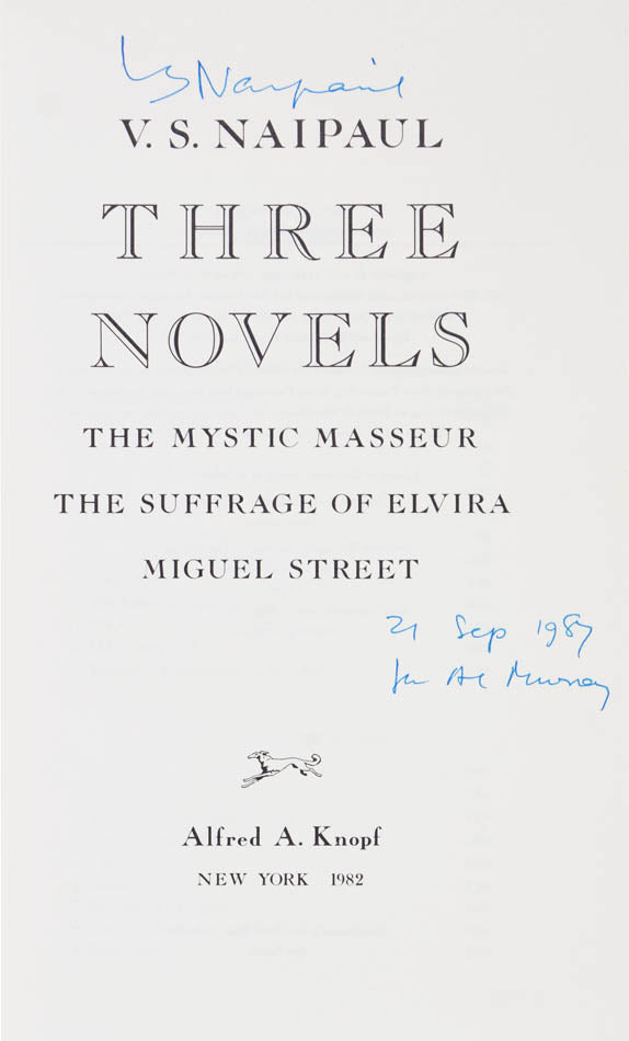 Naipaul recalls in A Turn in the South, 'I was given the name of a writer who had been educated at Tuskegee, Al Murray. He was, or had been, a protégé of Ralph Ellison...His sitting room was full of books and records...the books were a serious collection of twentieth-century American writing in first or very early editions.' Al Murray would later say, 'Naipaul is like a satellite in orbit. He's got an objectivity that no one else has, and he knows that the past is an albatross.' Inscribed, literary association copies of Naipaul's works are distinctly uncommon.