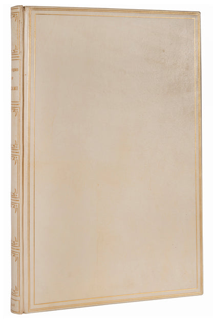 First edition, first impression, deluxe issue being one of 55 numbered copies printed on handmade paper and specially bound by Sangorski and Sutcliffe; folio, (38 x 26 cm); 16 full-page colour plates, internally clean and crisp; original full cream vellum, twin rules to boards gilt, titles and crescent decoration to spine gilt, top edge gilt others untrimmed. A fine copy.