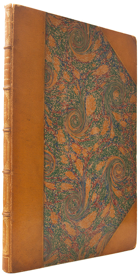 First French edition; folio (38.2 x 26.2 cm); 72 aquatint plates engraved by Devere after Cruz Cano Y Olemedilla and finished in contemporary hand-colour, 8 cm repaired closed tear to title near imprint affecting one letter, the first 2 letters of the imprint missing (probably through a production flaw and consequently repaired), faint tears around the letterpress of 'Paris' due to printing technique, some light scattered variable spotting, more heavily affecting plates 12, 36, & 55, plate 56 mis-bound between plates 60 and 61; 19th-century tan half calf ruled in gilt, over marbled paper boards, top edge gilt, the others red, extremities faintly rubbed, joint splitting at head of spine.