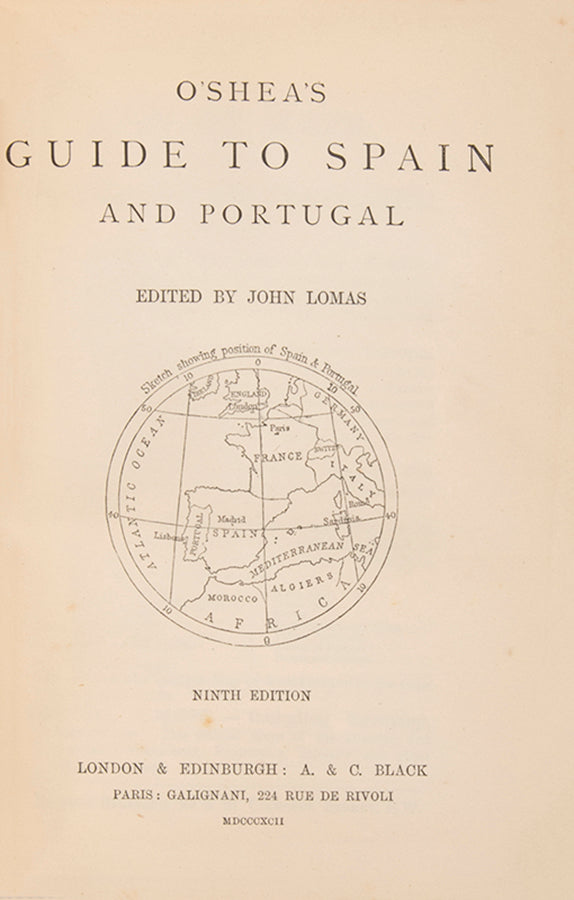 Ninth edition. 8vo (18 x 13 cms), cxiii, 562pp, 13 maps and plans including general folding map of Spain in rear pocket, Stanford list of maps tipped in at front before title-page, 4 ground plans, 6 railway charts, ink writing on endpapers; publisher's green cloth gilt, with wear to the edges, ink writing on bottom fore-edge; a very good copy.