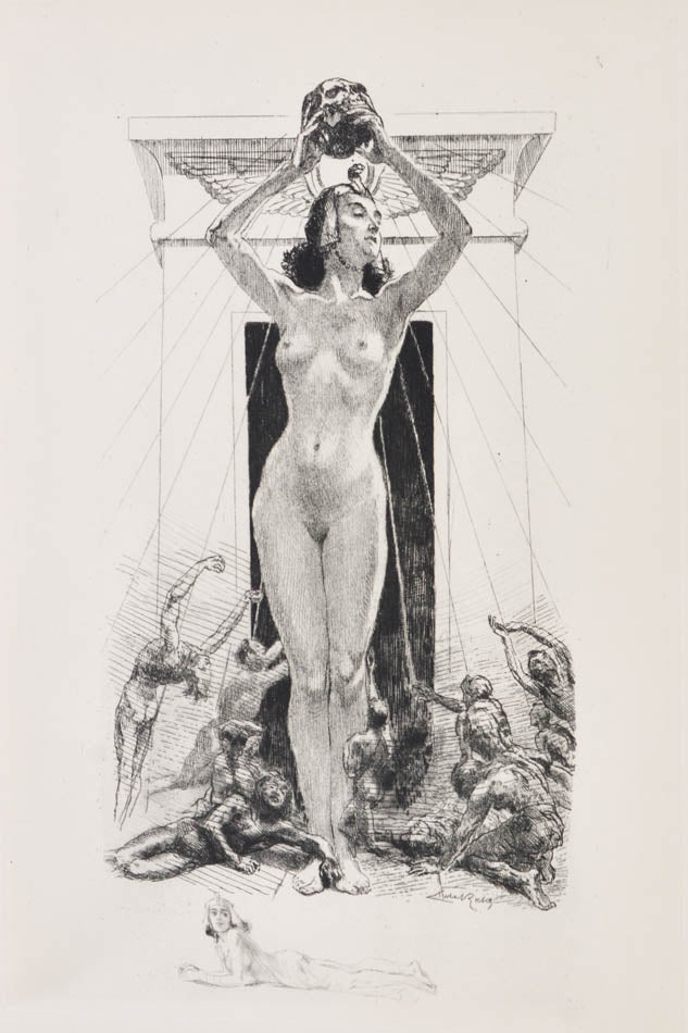Limited edition and the first illustrated, one of 51 copies (this being no. 34) on papier hollande (from a total edition of 582); 4to (32.5 x 27 cm); illustrated with 24 original engravings after Lobel-Riche in three states, an extra suite of 12 of the plates in three states and an additional signed pen ink drawing, three pages of manuscript notes by Pierre Benoit entitled 'l'Art du Romanicer'; unbound as issued with original publisher's wrappers, in a later orange marbled slipcase.