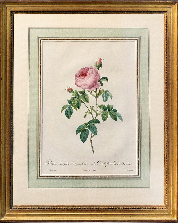 Pierre Joseph Redoute (1759 - 1840) was perhaps one of the greatest of all flower artists and was employed by the Empress Josephine, wife of the Emperor Napoleon as her botanical artist at her estate of Malmaison outside Paris. This work "Les Roses" is his most celebrated and perhaps the most reproduced of all flower books. In it he figured almost all the important roses of his day (Empire France). Included were many of the key ancestors of our present-day roses. The plates in Les Roses have artistic value, botanical and documentary value, both for the species and cultivars still surviving and for those that have disappeared... The plates here are magnificently and delicately worked, the subtle colouring of the famous French colour printing, which was applied by a rag-stump and re-inked before every impression was an invention of Redoute's so he claimed. In fact he was awarded a medal for it by Louis XVIII.