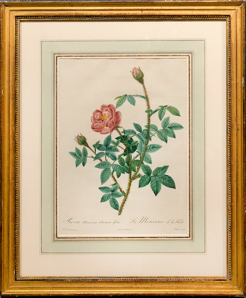 Pierre Joseph Redoute (1759 - 1840) was perhaps one of the greatest of all flower artists and was employed by the Empress Josephine, wife of the Emperor Napoleon as her botanical artist at her estate of Malmaison outside Paris. This work "Les Roses" is his most celebrated and perhaps the most reproduced of all flower books. In it he figured almost all the important roses of his day (Empire France). Included were many of the key ancestors of our present-day roses. The plates in Les Roses have artistic value, botanical and documentary value, both for the species and cultivars still surviving and for those that have disappeared... The plates here are magnificently and delicately worked, the subtle colouring of the famous French colour printing, which was applied by a rag-stump and re-inked before every impression was an invention of Redoute's so he claimed. In fact he was awarded a medal for it by Louis XVIII.