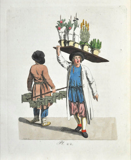 The present early ethnographic account illustrated with 68 hand-coloured plates is divided into two parts: one in French and German with forty engravings, and the other one only in German with twenty-eight plates. These two parts might have initially been published as two different works that were later bound together; however their scarcity in bibliographical works didn't allow us to confirm this.