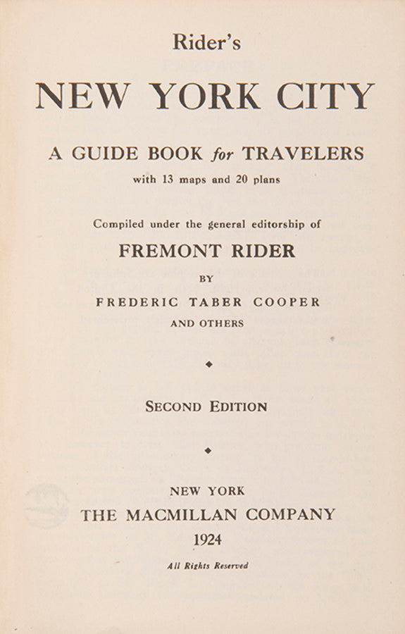 RIDER, Fremont (editor), TABER COOPER, Frederic