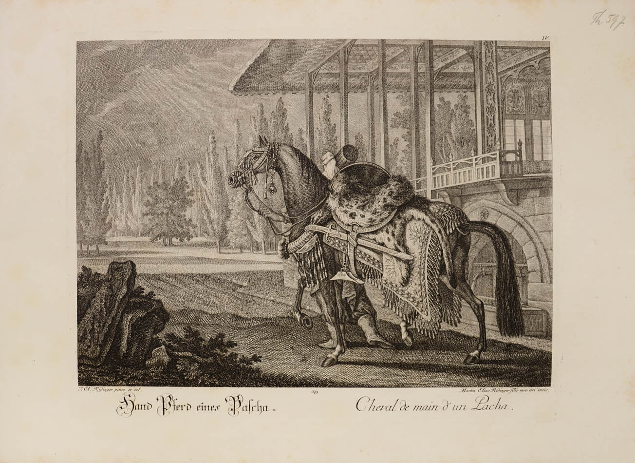 The second work also shows richly caparisoned horses, this time from various countries, and includes Arab, Persian, Turkish, and European examples, whilst the third is the complete set of Ridinger's very rare work on how to trap wild animals.