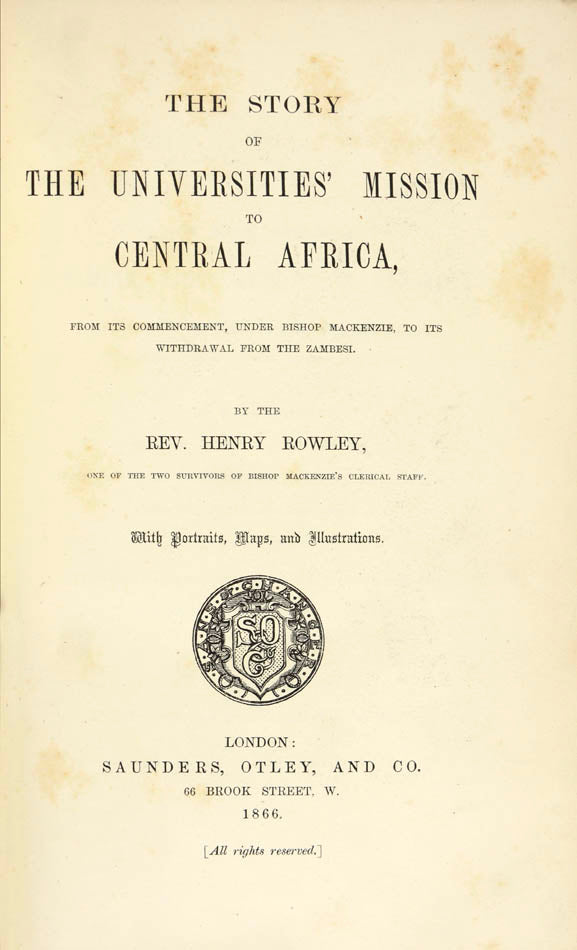 The Universities' Mission to Central Africa (c.1857 - 1965) was a missionary society established by members of the Anglican Church within the universities of Oxford, Cambridge, Durham, and Dublin. It was firmly in the Anglo-Catholic tradition of the Church, and the first to devolve authority to a bishop in the field rather than to a home committee. Founded in response to a plea by David Livingstone, the society had two major goals: to establish a mission presence in Central Africa, and to actively oppose the slave trade.
