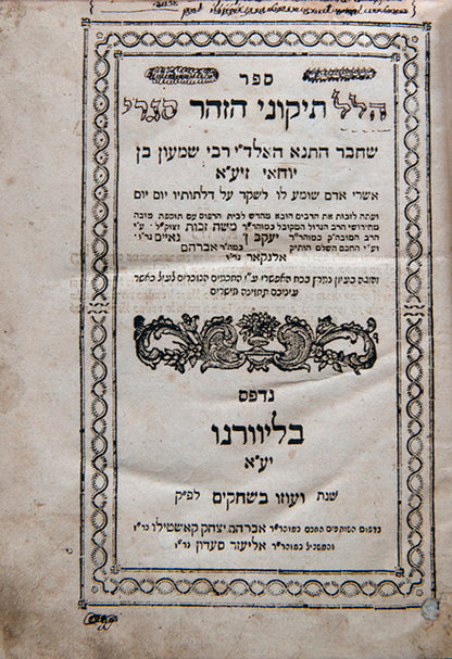 Livorno, Avraham Isaac Kashtilo & Eliezer Saadon (printers), 1789