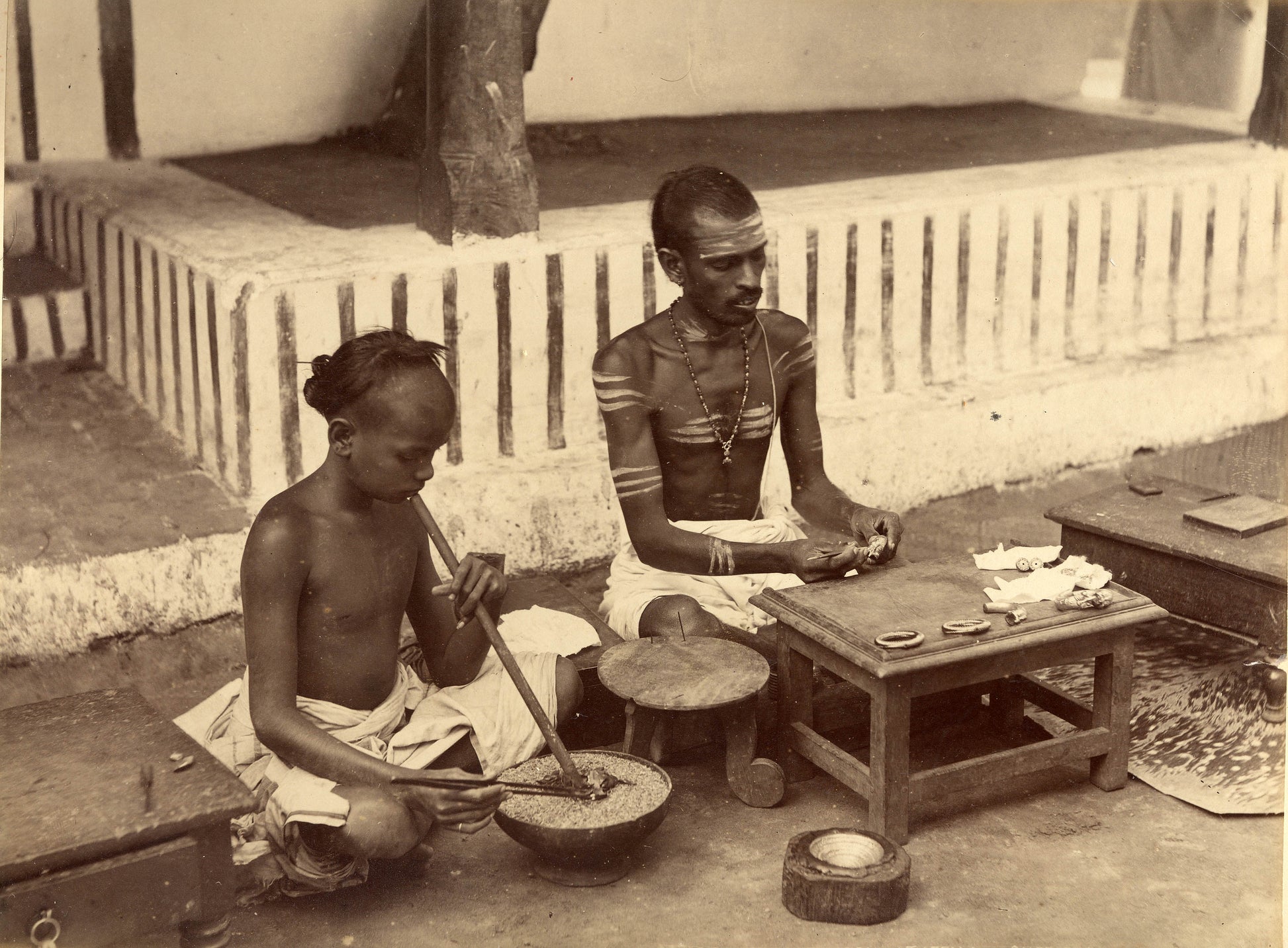 Silversmiths at work, Ceylon..