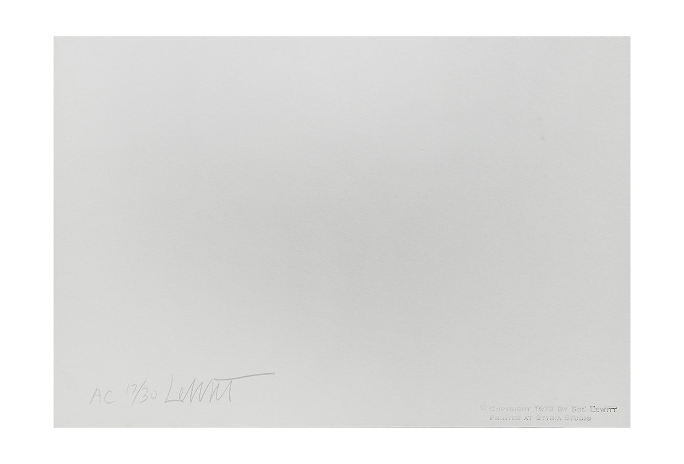 Lithograph, 1973, on wove paper, signed in pencil on the reverse, inscribed '17/30 A.C.' also on the reverse, a proof aside from the edition of 300, printed by Styria Studio, Inc., published by Experiments in Art and Technology, New York, 22.5 x 22.5 cm. (8 7/8 x 8 7/8 in.)