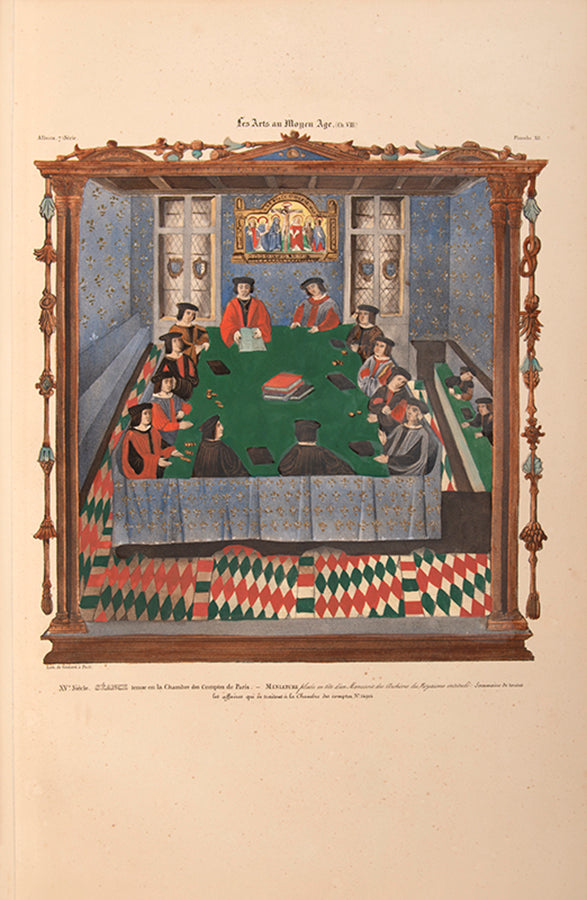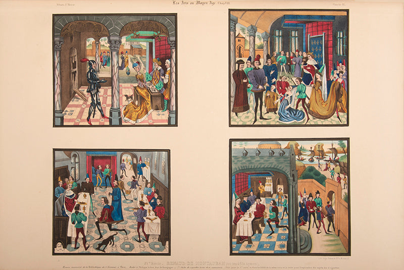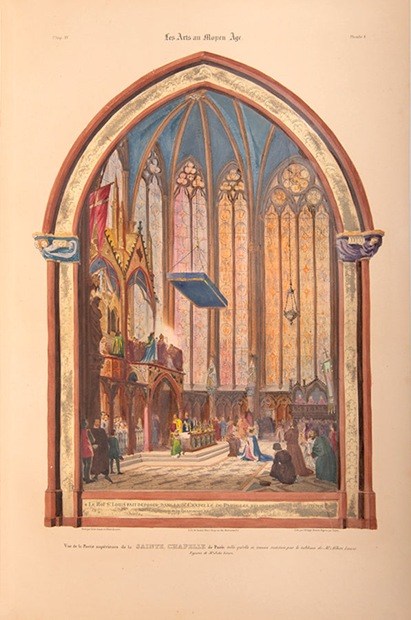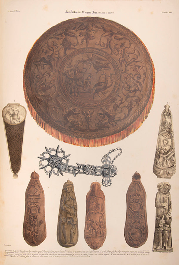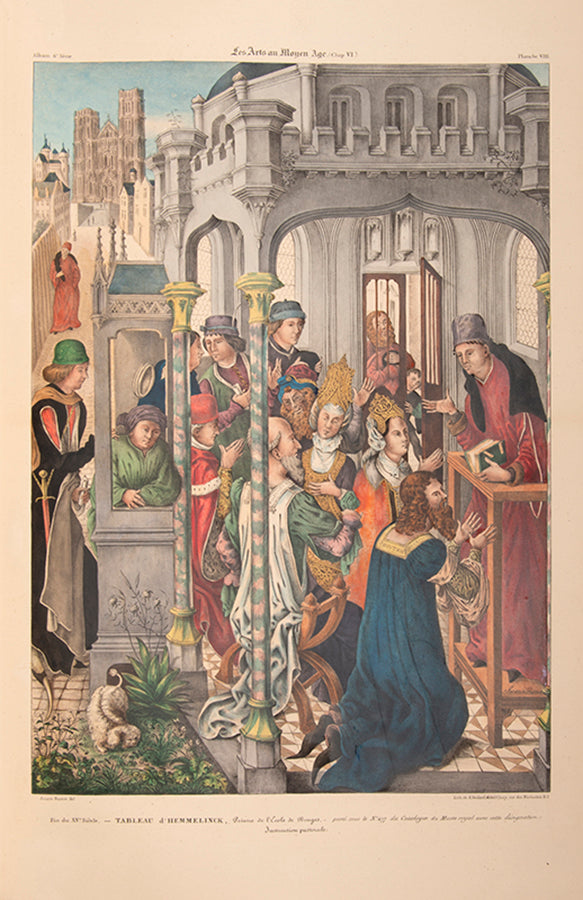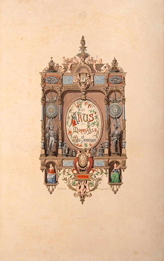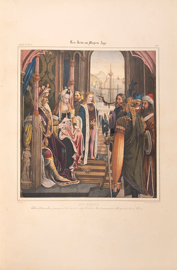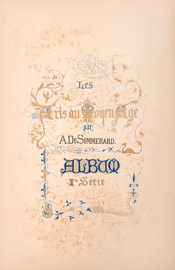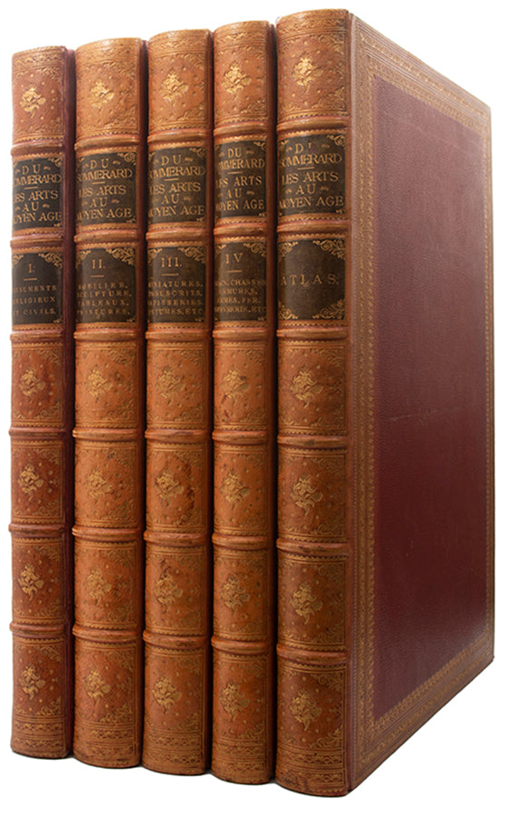 Monumental publication on medieval arts. Sommerard's monumental publication on medieval arts: architecture, tapestry, goldsmithing, furniture, miniature, etc, illustrated with colour plates. Here in a fine crimson morocco binding.