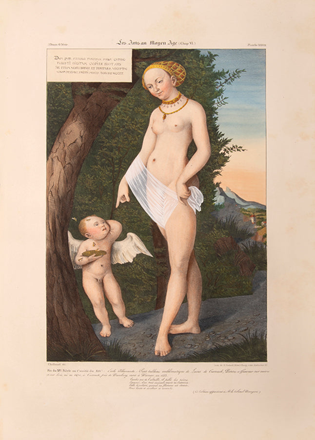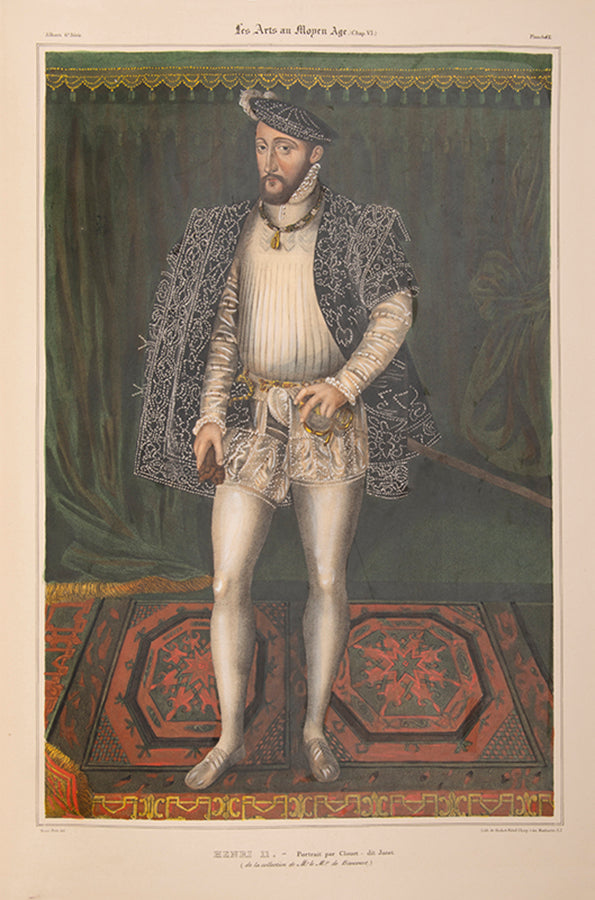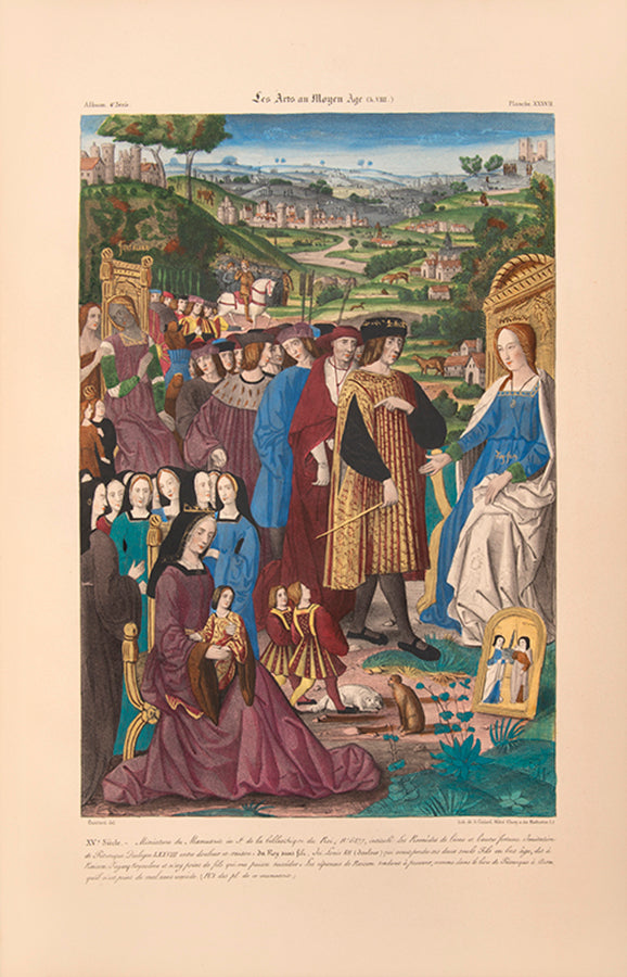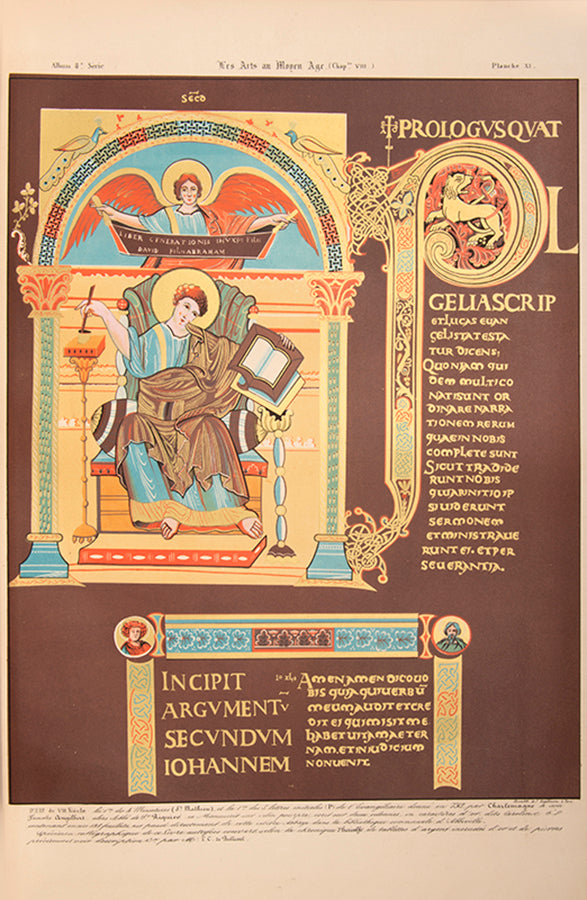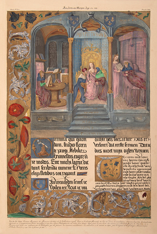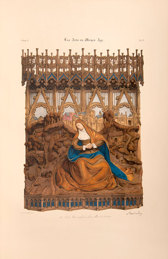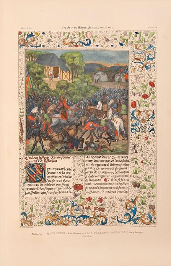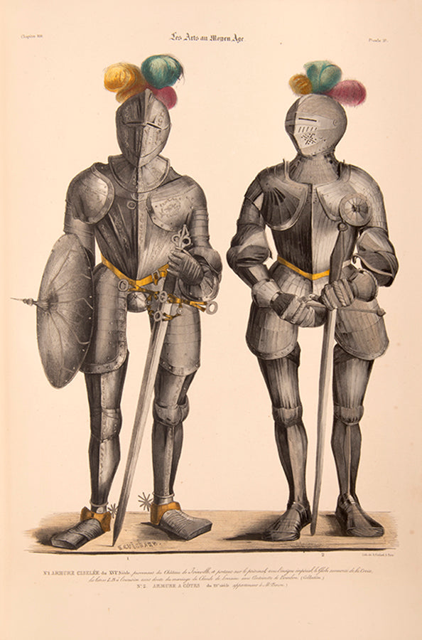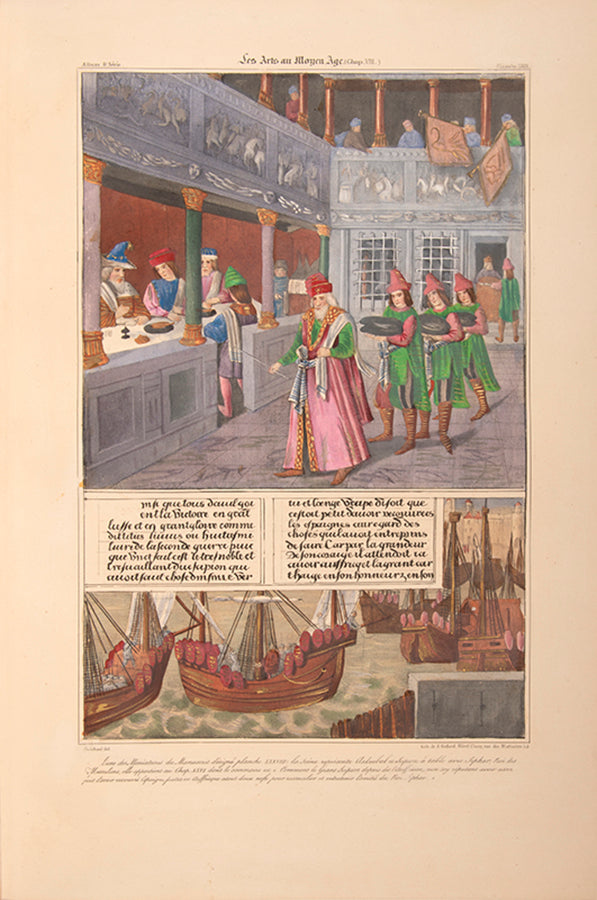 Monumental publication on medieval arts. Sommerard's monumental publication on medieval arts: architecture, tapestry, goldsmithing, furniture, miniature, etc, illustrated with colour plates. Here in a fine crimson morocco binding.
