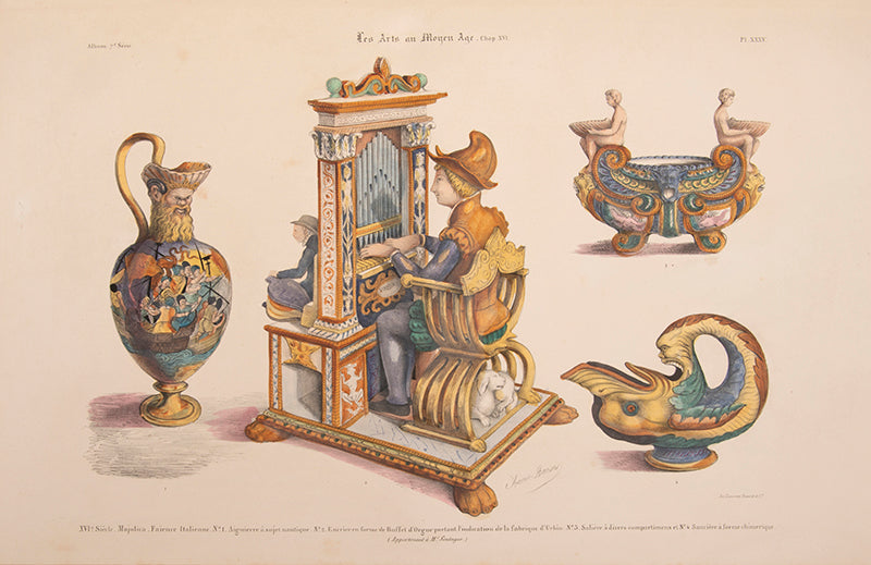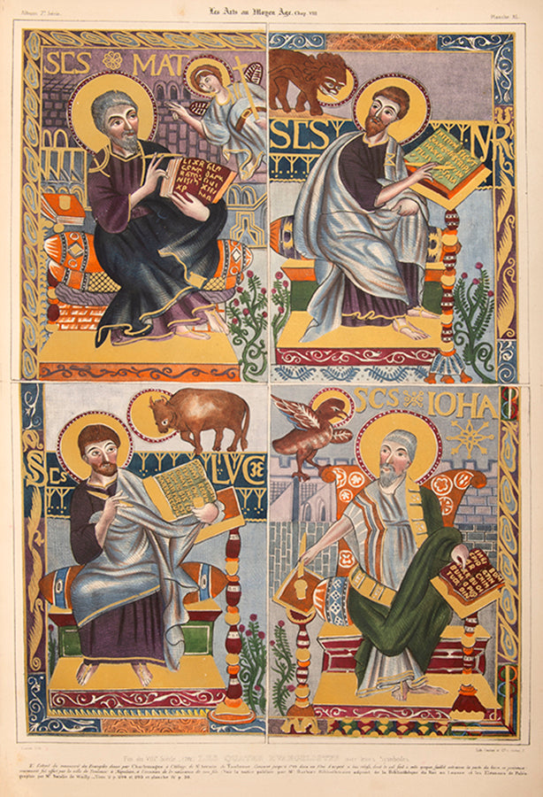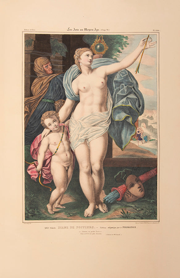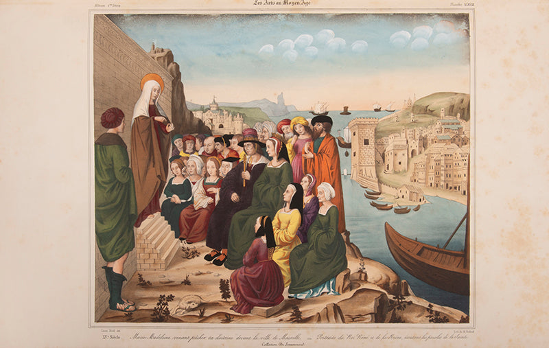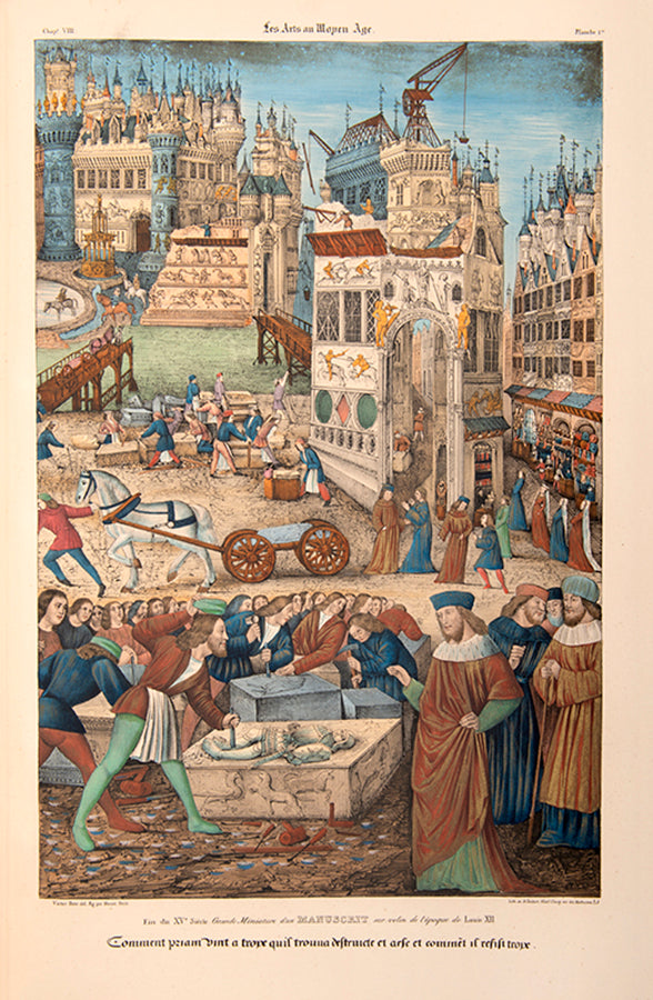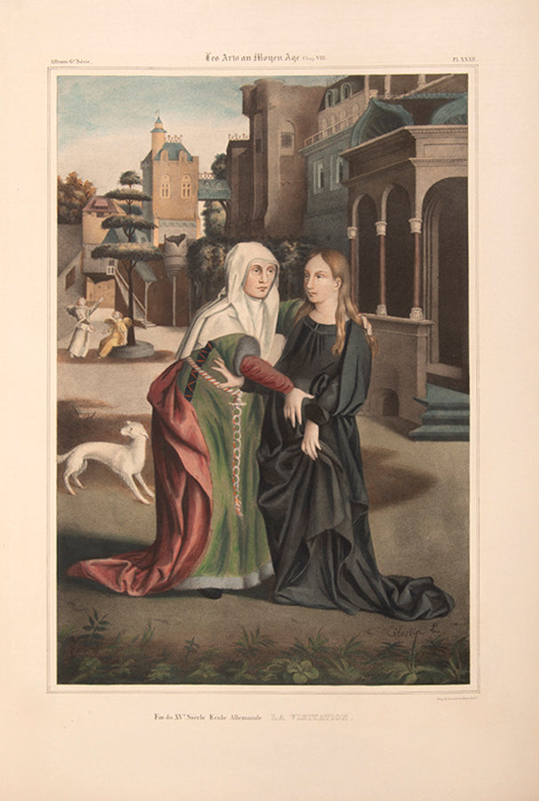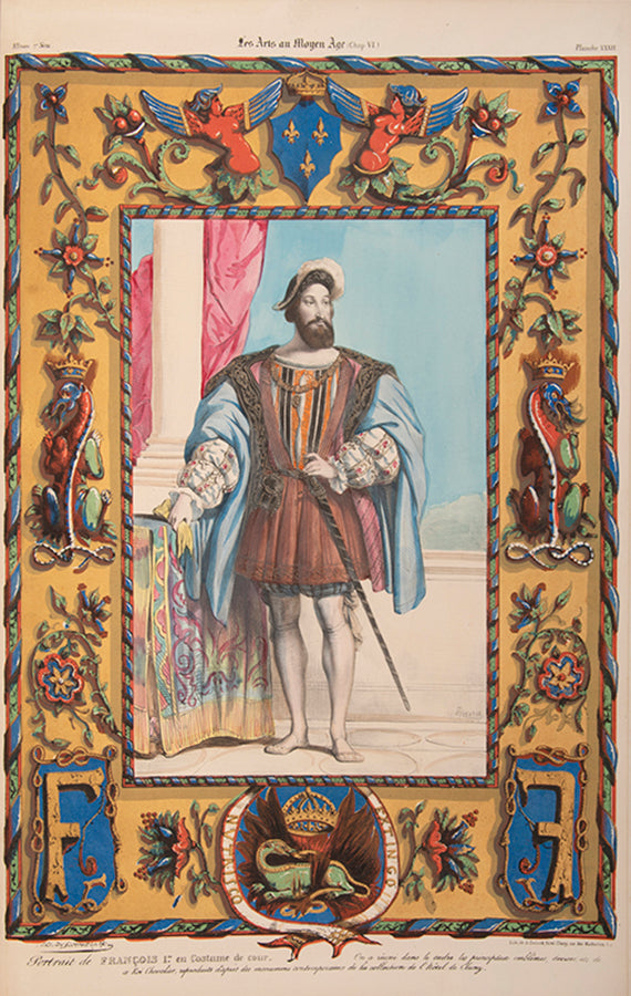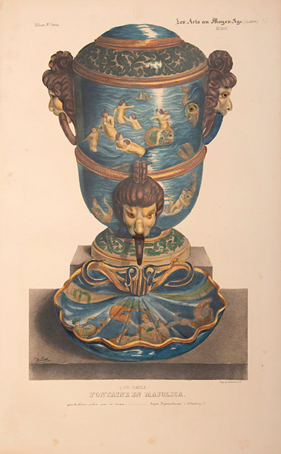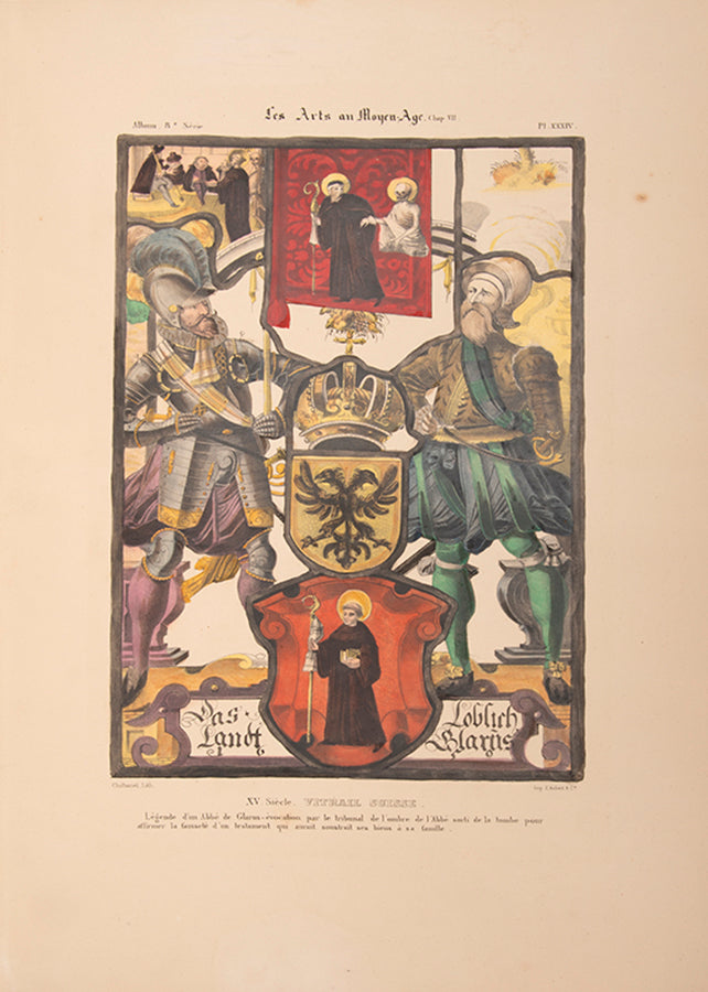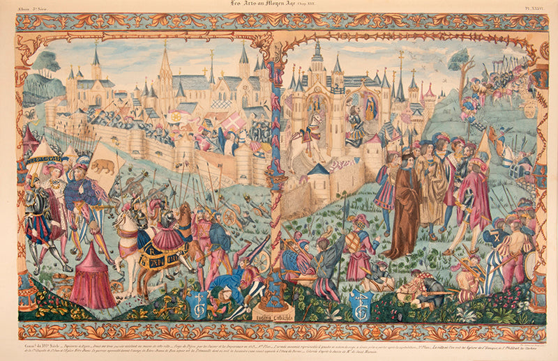 Monumental publication on medieval arts. Sommerard's monumental publication on medieval arts: architecture, tapestry, goldsmithing, furniture, miniature, etc, illustrated with colour plates. Here in a fine crimson morocco binding.