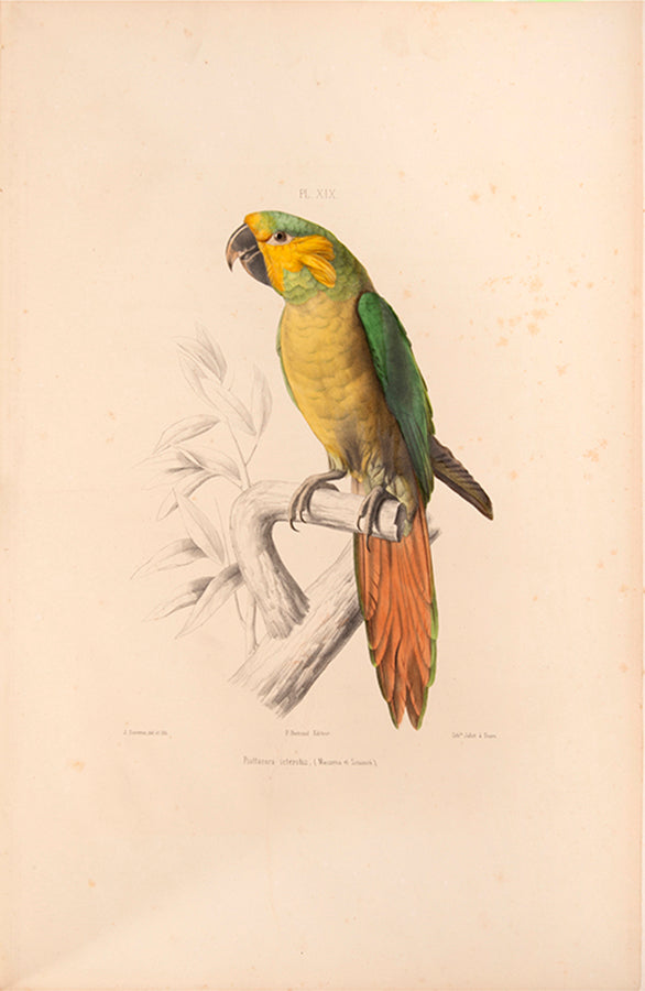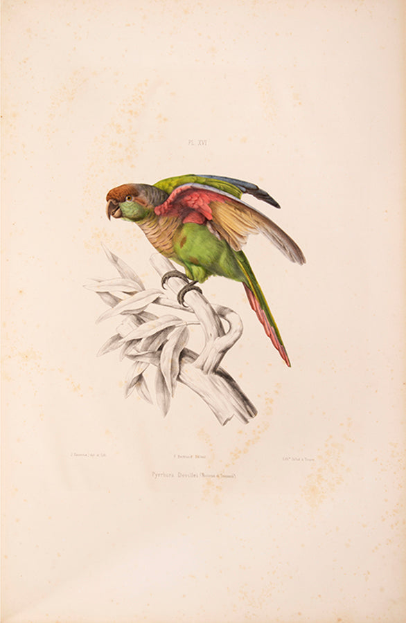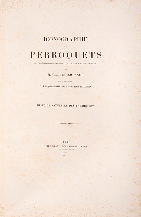 First edition; large folio; 48 hand-coloured, lithographed plates (last plate is misnumbered LXXIX) with descriptive text. The first 15 plates by Emile Théophile Blanchard (1795-1864) have both the birds and the branches coloured, while the branches are left uncoloured in the remaining plates by J. Daverne (? -1860); modern black half morocco gilt slight tear to margin plate 14, spotting, browning and toning to many of the plates as usual with this book due to the slightly inferior paper stock used, but withal a very good example of this work; housed in modern black box.