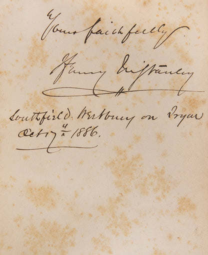 Copyright edition; 3 vols, 8vo, inscribed by Stanley to the first blank, 'Yours faithfully / Henry Stnaley / Southfield Westbury on [?] / Oct 17th 1886', 6 engraved plates, contemporary half calf gilt, lightly rubbed, foxing to endpapers, a very good copy.