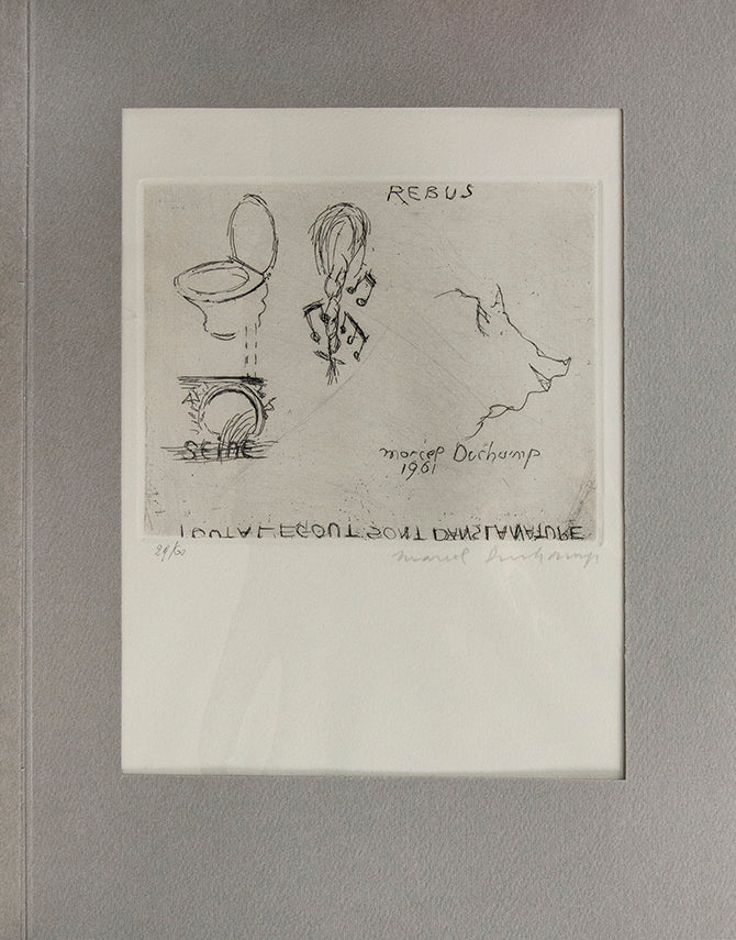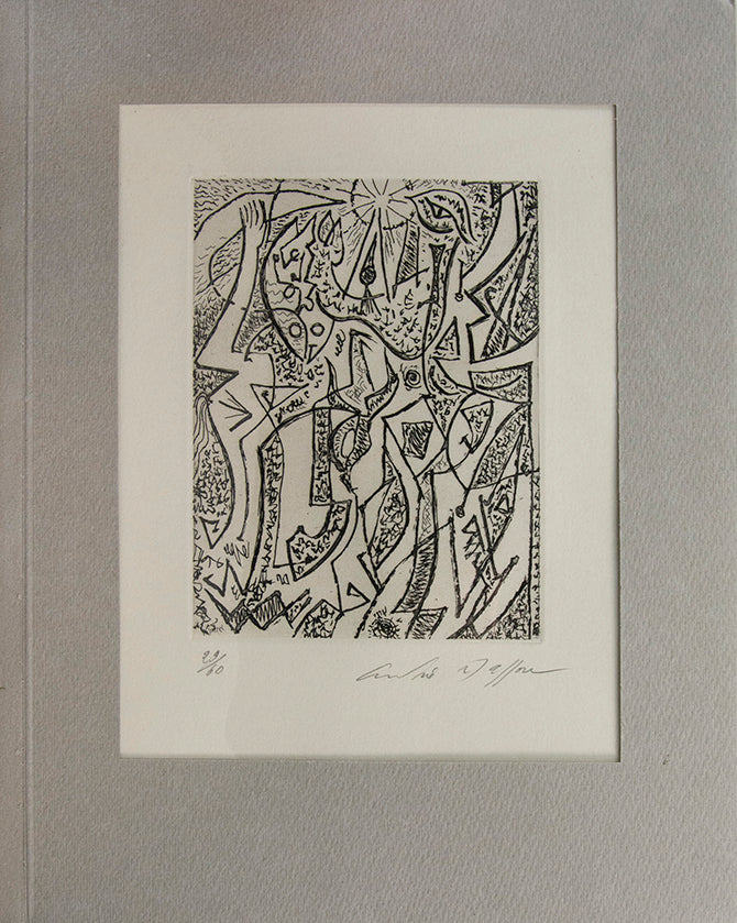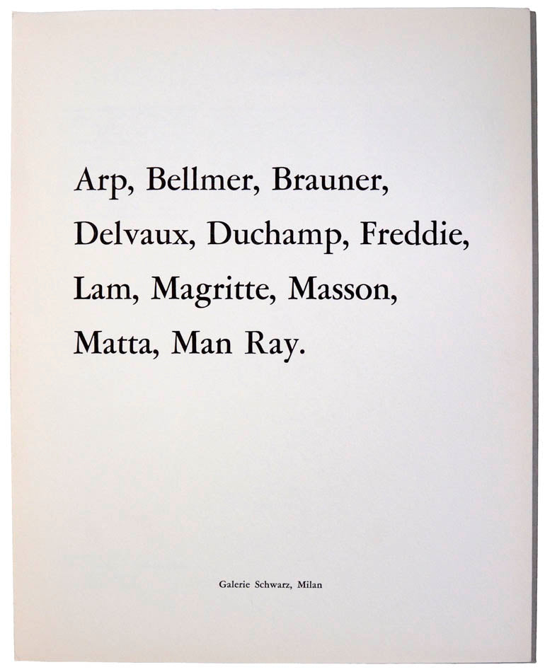 First edition, one of 60 copies, from a total edition of 100, small folio (31 x 25 cm); the complete set of eleven engravings by Jean Arp, Hans Bellmer, Victor Brauner, Paul Delvaux, Marcel Duchamp, Wilhelm Freddie, Wifredo Lam, René Magritte, André Masson, Roberto Matta, Man Ray, on handmade Rives paper, each signed in pencil, each numbered from the edition of 60; each housed in separate cardboard passe partouts mounts with protective plastic windows; original publisher's printed boards, a fine copy.