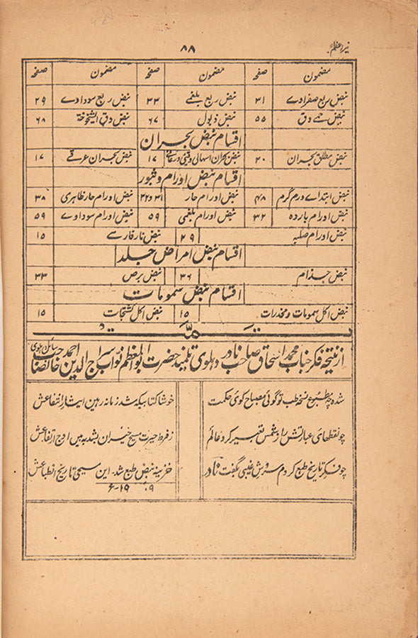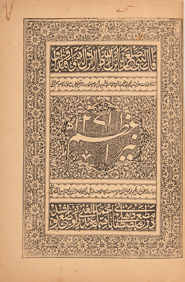 Single volume, lithographed on paper, in Farsi and Urdu, 88pp., complete, 350 x 210 mm; lithographed in single column, decorated title, head-piece opening the text, index at the end of the volume, a few small chips to outer edges, a few small marks and stains, leaves evenly age-toned; in modern rexine-backed boards, new endpapers added, spine gilt.