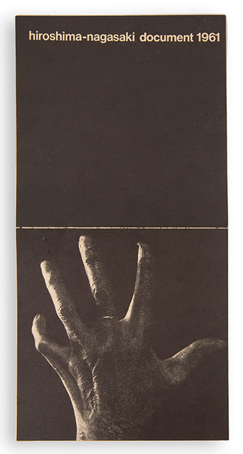 First edition, 2 vols.; [vol. 1] 4to (278 x 278 mm, 11 x 11 in); 71 black-and-white photographs by Tomatsu Shomei and 21 by Domon Ken printed in sheet-fed gravure, paintings by Maruki Iri and Maruki Toshio, foreword by Hideki Yukawa, text in English, edited by Sano Bunichiro et al, design by Sugiura Kohei and Awazu Kiyoshi, slight pulling to front free endpaper, cream cloth-covered boards, spine and sides stamped in grey, minor spotting to spine, publisher's bi-fold order form laid in; [144] (incl. two folding); [vol.2 ] 4to (280 x 280 mm, 11 x 11 in); contributions by Sakuma Kiyoshi, Kusano Nobuo, and Hata Toshio, diagrams and photographic illustrations in black-and-white, printed adhesive-bound wrappers, lightly foxed, a very good copy in the publisher's inner cardboard sleeve worn cardboard outer sleeve printed in purple; [vol. 1] [144]pp, [vol.2] 54pp.