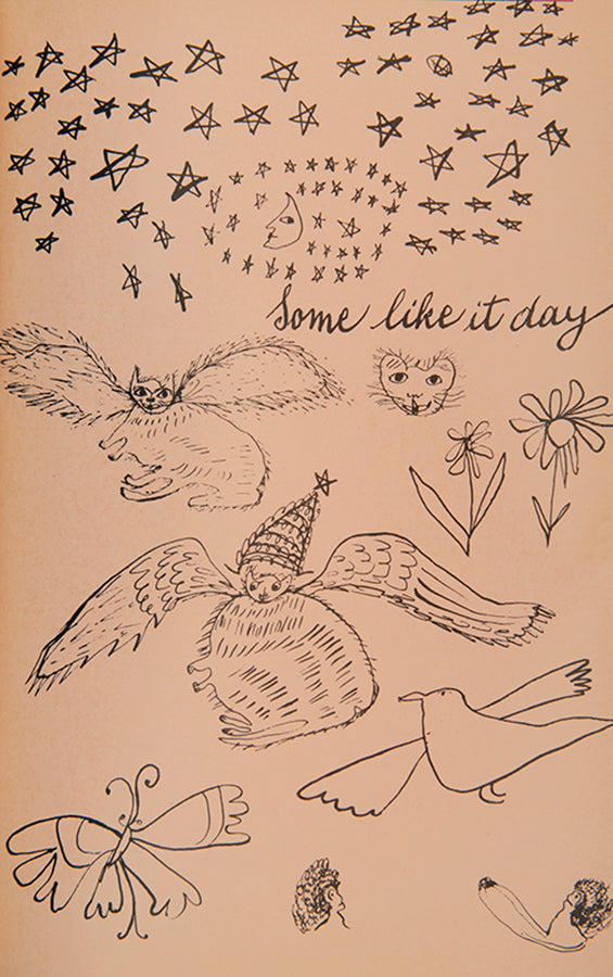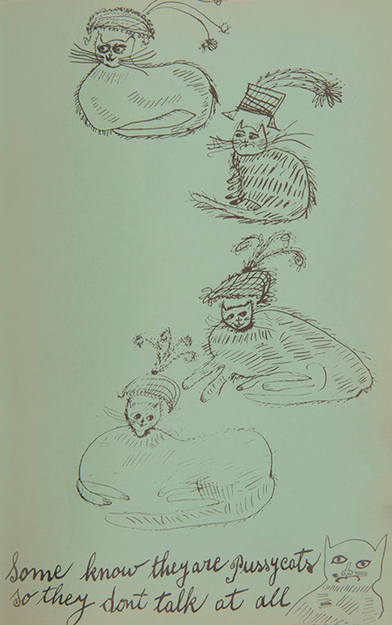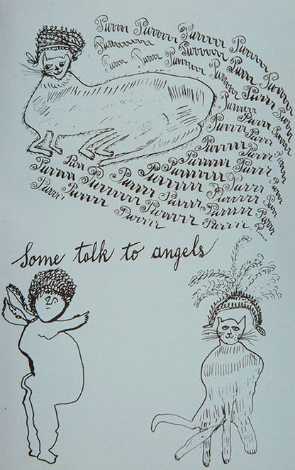Andy Warhol's mother, Julia Warhola was an artist in her own right and provided the calligraphy to hundreds of her son's album covers, advertisements and book illustrations. In Holy Cats, however, she takes centre stage, providing not only her delicate penmanship but also her charming drawings of cats and angels. Warhola was born in a Ruthenian village at the end of the 19th century and it is clear her style was influenced by the traditional folk art she grew up with.