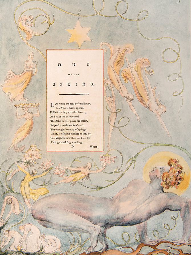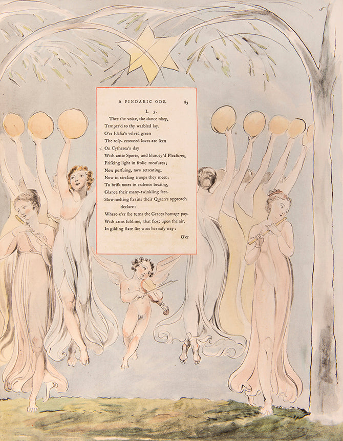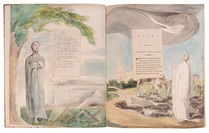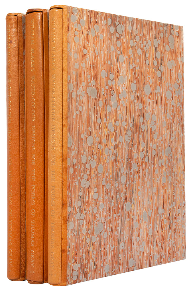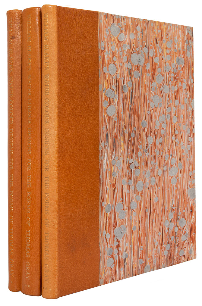 One of 352 copies. An very good three-volume limited edition set of William Blake's Water-Colour Designs for the Poems of Thomas Gray, limited to 352 copies printed on Arches pure rag paper made specially to match that used by Blake. Profusely illustrated with extravagant and imaginative watercolours, surrounding the printed text of Gray's poems. Complete with introduction and commentary by Blake's biographer, Geoffrey Keynes KT.