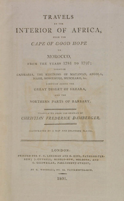 from the Cape of Good Hope to Morocco; in Caffiraria, the kingdoms of Mataman, Angola, Massi, Monoemugi, Muschako, Bahahara, Wangara, Haoussa, &. &. And thence through the Desert of Sahara and the North of Barbary to Morocco, between the years 1781 and 1797.