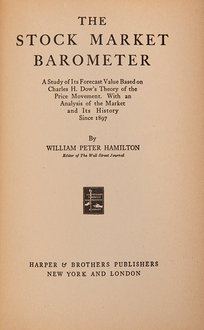 William Peter Hamilton (1867-1929) was editor of the Wall Street Journal from 1908 to 1929 and a leading proponent of the Dow Theory, a trend-following trading strategy which called for 'soulless barometers, prices indexes and averages to tell us where we are going and what we may expect' (p.4).