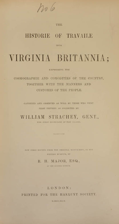 William Strachey was a member of the Virginia Company chartered by King James I to establish a colony in North America. A primary source for the early history of the English colonisation of North America.