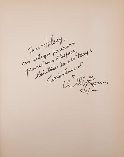 Presentation copy inscribed to Hilary Gerrard. presentation copy inscribed to Hilary Gerrard, Ringo Starr's manager for over thirty years and a director of the Beatles company Apple Corps.: 'Pour Hilary, / ces villages parisiens / proches dans l'espace, / lointains dans le temps. / Cordialement / Willy Ronis / 5/7/2000'.