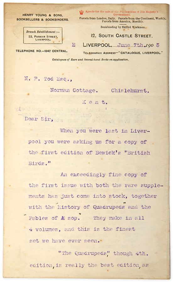 William Yarrell (1784-1856) was a respected zoologist. 'About 1823, he began to note the occurrence and appearance of rare birds and, by 1825, was sending specimens to the artist Thomas Bewick (1753–1828), after whom he was to name a new species of swan. He also took a great interest in the contents of poultry and fish shops and markets... By 1825 he had assembled considerable natural history collections, notably one of birds' eggs (including the egg of a great auk). These collections included a great number of specimens collected by himself, for one of his strengths lay in careful dissection and preparation' (Oxford Dictionary of National Biography).