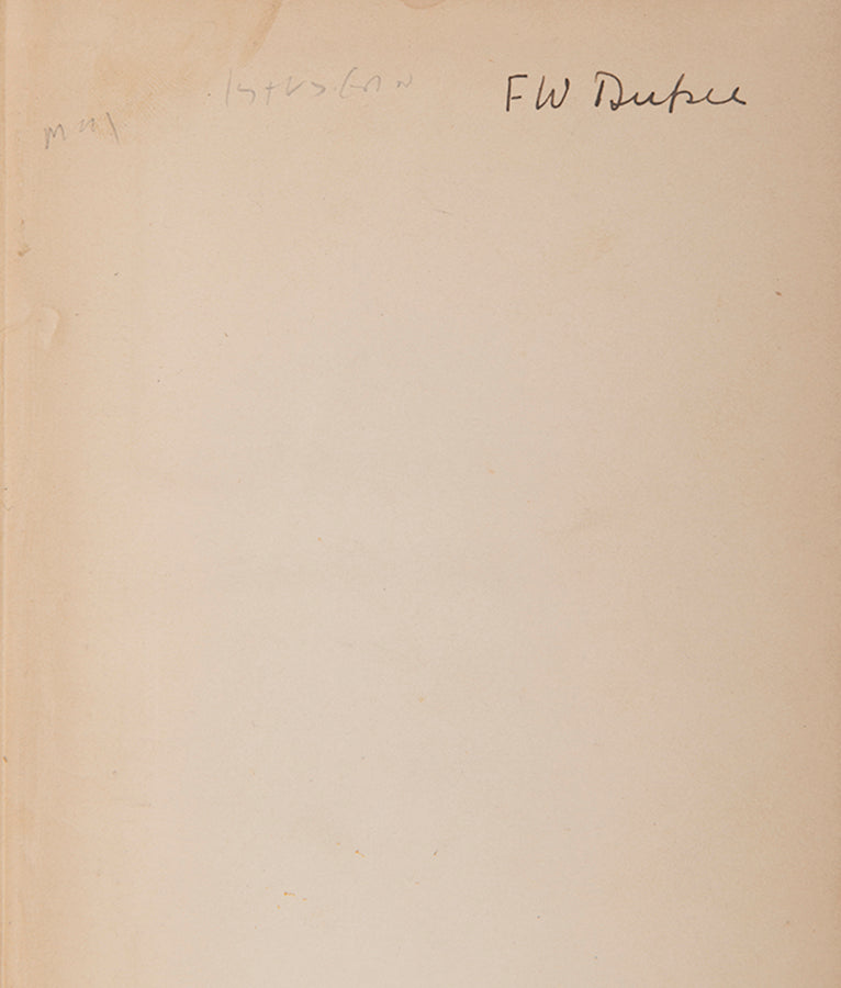 With provenance for the American literary critic and essayist F.W. Dupee (1904-1979). A committed Marxist, he was the founding editor of The Partisan Review, and taught at Bowdoin, Bard and Columbia, where he was professor of English.